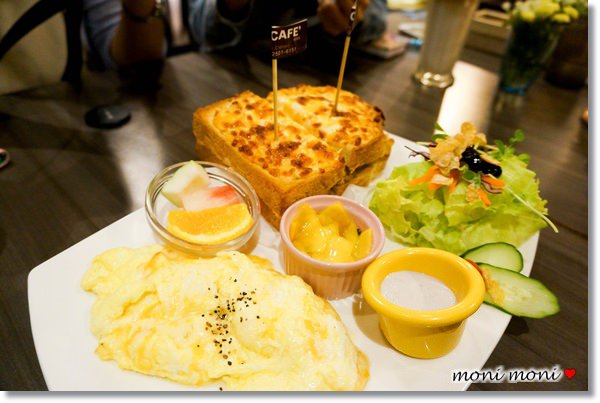 裡面除了有基本的沙拉,還有水果和百香果青木瓜(我的愛)以及起士的烘蛋喔~烘蛋真的很好吃,而且分量還超大一份的,裡面有濃濃的起士(起士控又犯囉!!)