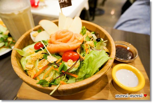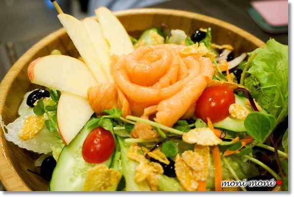 木盆沙拉,其實分量來說蠻適合兩到三然一起食用,不過大家都有點套餐的方式上,就適合三到四人食用。