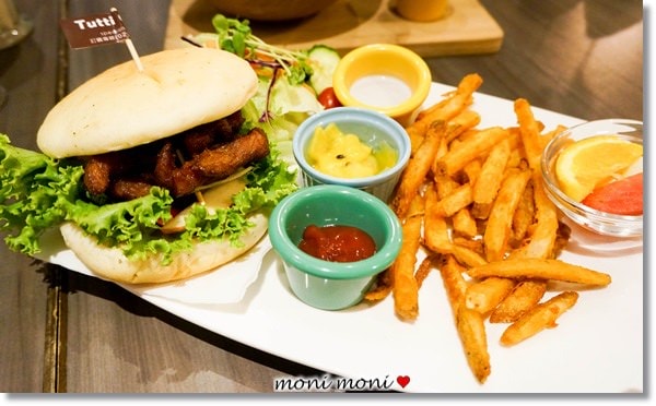 不過裡面的肉排並非漢堡肉排就是了,而肉塊是一條條的比較特別的吃法。