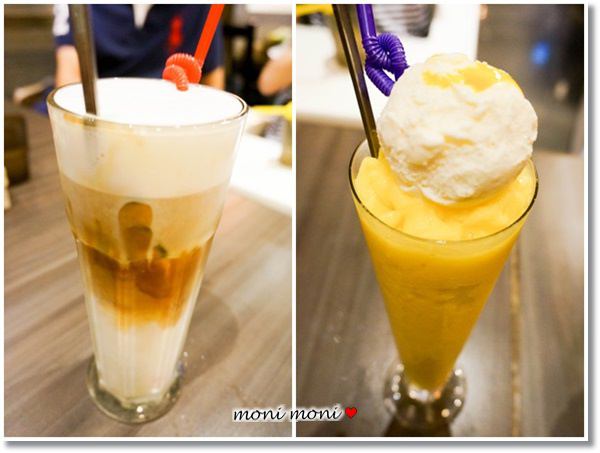 友人點的冰拿鐵、冰淇淋芒果優格冰沙150元