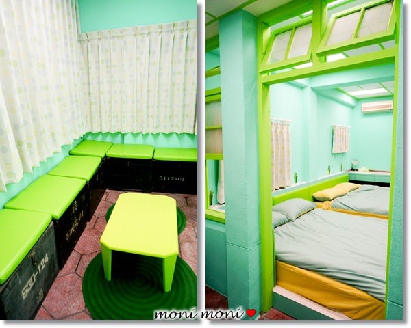 有著女性都愛的魔幻黑白風格,以及適合家庭、朋友的青草綠四人房,