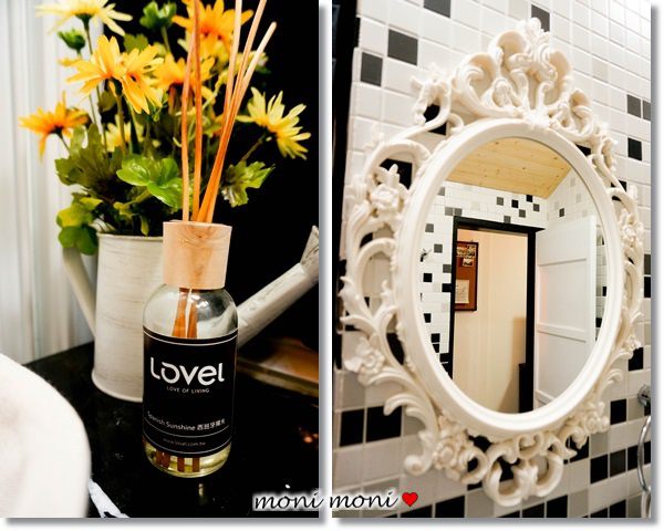 這面鏡子簡直就是魔鏡馬~根本就是女生一定會狂罩狂自拍的鏡子,旁邊擺放著小向日葵花和淡淡的薰香劑。