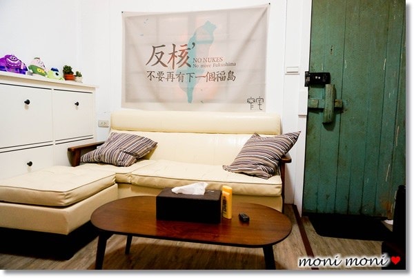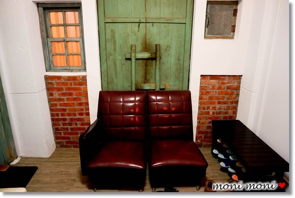 一入內就看到旁邊是溫馨的老舊沙發座椅,後方則也有著老屋味道的門把。