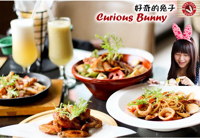Curious Bunny|電話:07 727 8300 地址:高雄市苓雅區林泉街77號 |營業時間 : 週一~四、日 11:00~22:00 週五~六~22:30 記得以前曾做過愛麗絲夢遊仙境的藝術作品,還蠻喜歡那種奇幻故事的神奇內容, 這次化身為愛麗絲夢遊仙境中那好奇的兔子,走入Curious Bunny一探究竟,