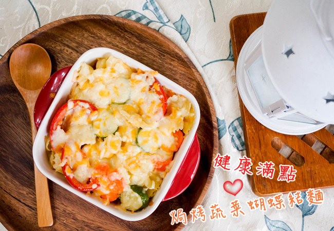 自從買了紅色的陶瓷方狀盤後,就一直打算要做焗烤類的料理, 看了家裡所剩的蝴蝶結麵,就想來做一個簡單的蔬菜素食焗烤。 義式料理個人覺得都比較簡單點,都是基本的蔬菜配料,隨著自己的喜好去調整製作出來。
